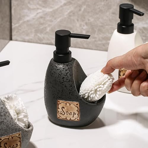 Generic - طقم موزع صابون سيراميك 2*1 للحمام مع حامل صابونة – صبانة سائل أنيقة بتصميم عصري لديكور المغسلة والحمام (اسود)