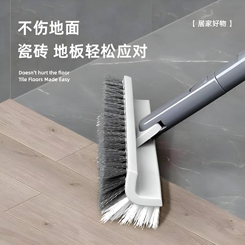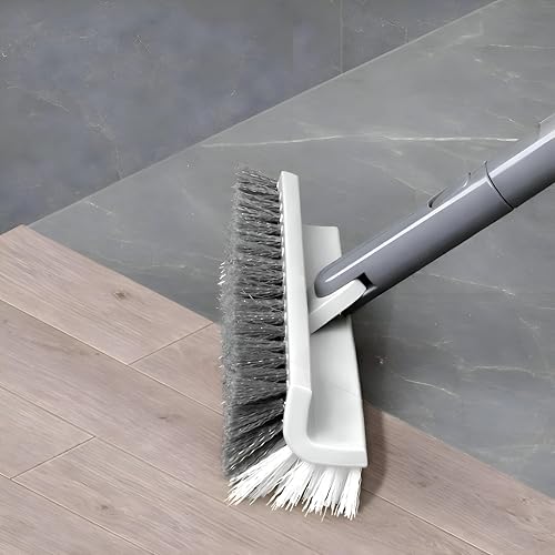 Generic - فرشاة تنظيف 2 في 1 - تجمع بين تنظيف الحمام ومسح الأرضيات في فرشاة واحدة مريحة مطلية بالجرافين مع مقبض طويل من الستانلس ستيل وشعيرات سريعة الجفاف