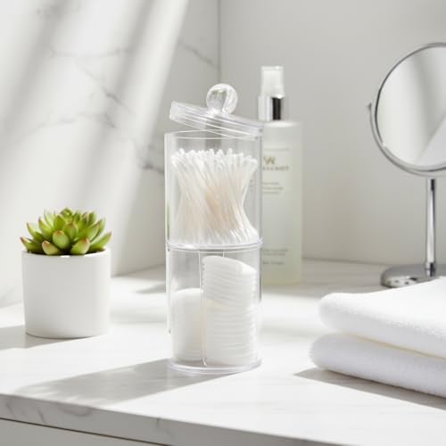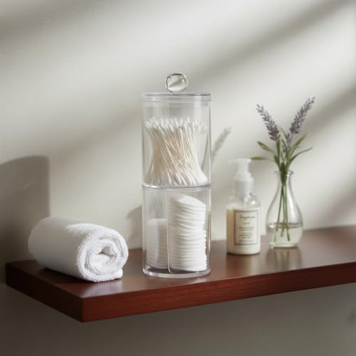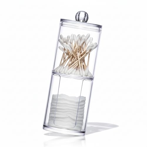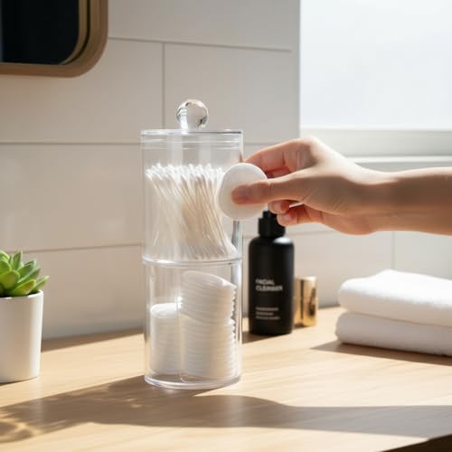 Generic - منظم أعواد قطنية وأقراص إزالة المكياج أكريليك شفاف 2 في 1 - برطمان تخزين مزدوج بغطاء كريستالي وفتحة سحب سفلية، حاوية مستحضرات تجميل موفر للمساحة للحمام والتسريحة.