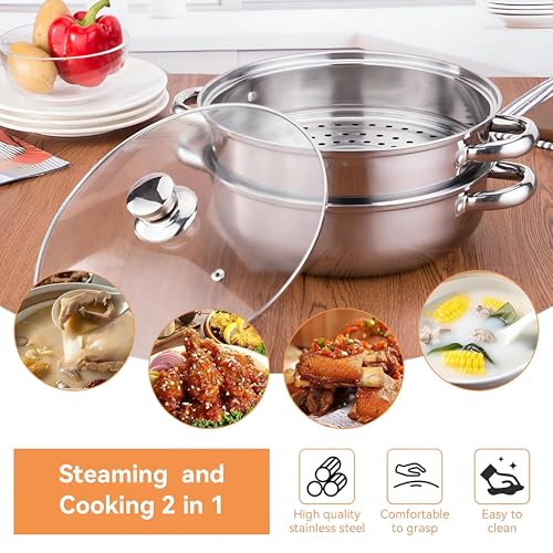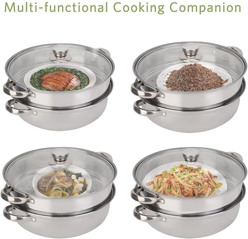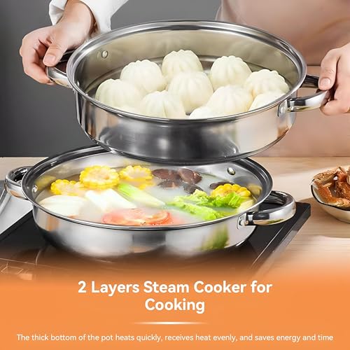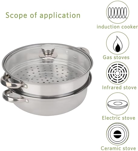 - يتميز وعاء الطهي بالبخار هذا بهيكل متين من الستانلس ستيل مقاس 28 سم مع غطاء زجاجي شفاف، مما يسمح لك بمراقبة طعامك بسهولة. قدرات الطهي بالبخار والغليان متعددة الاستخدامات 2 في 1 تجعلها مناسبة لأنماط الطبخ المختلفة، مما يضمن تجربة طهي سلسة.