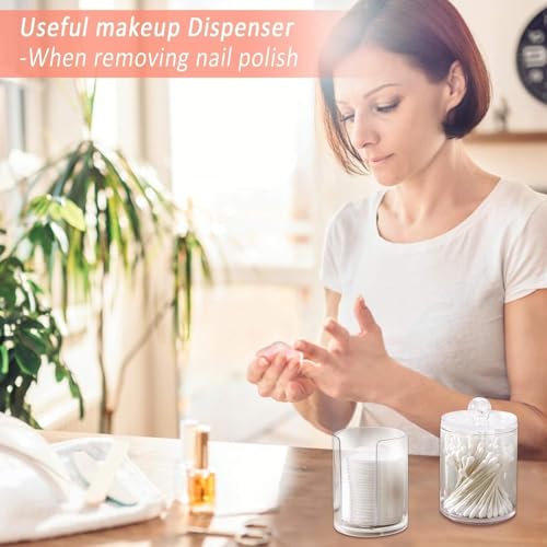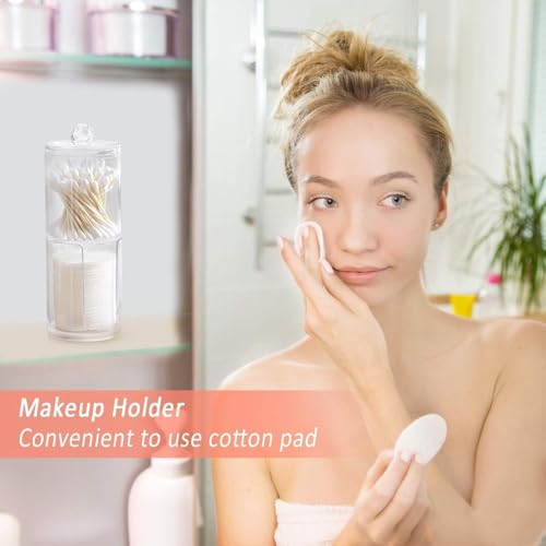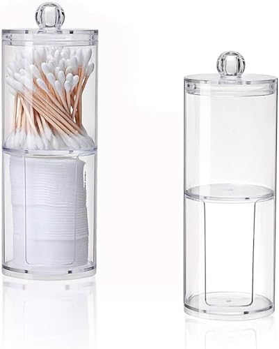 Generic - حامل أعواد ووسادات قطنية 2 في 1 – منظم أكريليك شفاف بغطاء لتخزين المسحات القطنية ووسادات إزالة المكياج، تصميم أنيق متعدد الاستخدامات لحمامك أو طاولة التجميل