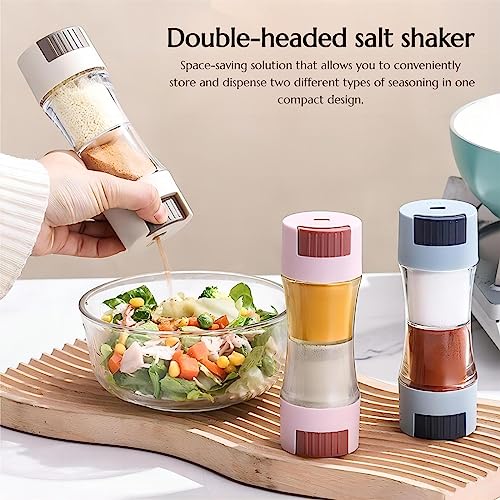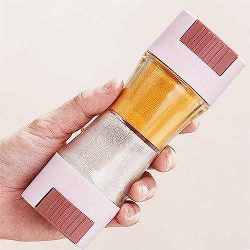KINTEGOOD - برطمان ملح وفلفل برأسين 2 في 1، موزع توابل وتتبيلات، برطمان توابل للتحكم في كمية التوابل، منظم توابل للمطبخ من 1 قطعة بلون وردي