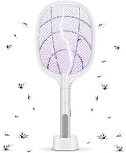 - 【مصباح 2 في 1 لمصيدة الحشرات مضاد للبعوض】 يتميز مضرب الذباب الكهربائي هذا بشبكة طاقة قوية 3000 فولت. مع وظائف قتل البعوض اليدوية والأوتوماتيكية، للضغط على الزر، يمكن أن يساعدك مضرب الذباب الكهربائي القوي على قتل الذباب والبعوض والحشرات الطائرة الأخرى بسرعة.