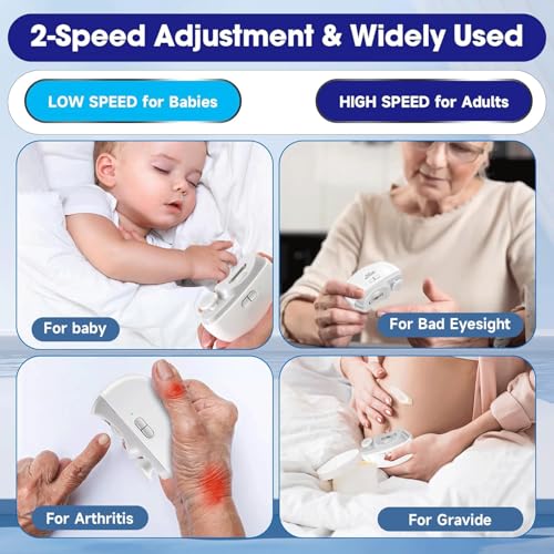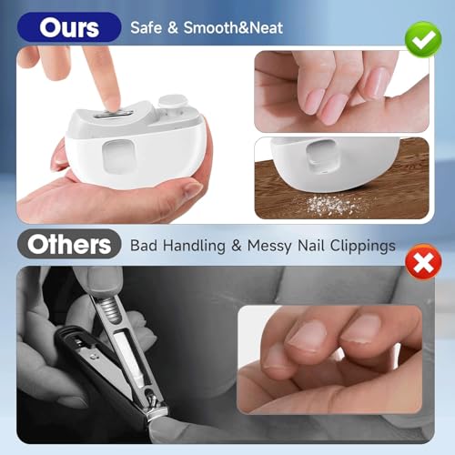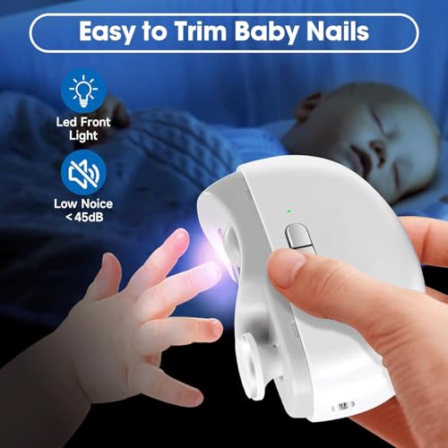 - 【ضوضاء منخفضة وإضاءة أمامية】تعمل قصافة الأظافر الكهربائية بمستوى ضوضاء منخفض يبلغ 45 ديسيبل، مما يسمح لك بتقليم أظافرك براحة البال. مزودة بإضاءة LED ناعمة، مما يسمح لك بقص الأظافر بدقة حتى في الليل دون تشغيل الضوء، لا داعي للقلق بشأن إزعاج راحة طفلك