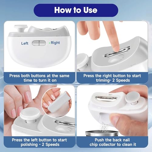 - 【تصميم قابل لإعادة الشحن عبر منفذ USB】تم تصميم قصافة الأظافر الأوتوماتيكية الخاصة بنا بشحن USB وخيارات سرعة مزدوجة (عالية ومنخفضة). مجهزة بمصباح LED مدمج لإضاءة لطيفة للعناية بالأظافر في الليل. للاستخدام، اضغط على كلا الزرين في وقت واحد، باستخدام الزر الأيسر للتلميع والزر الأيمن للقطع. اضبط السرعة حسب الحاجة وتجنب التقليم الزائد من خلال عدم التركيز لفترة طويلة على منطقة واحدة