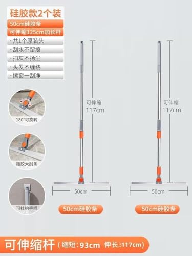 Generic - ممسحة أرضية وزجاج 2 في 1 بمقبض تلسكوبي وشفرة من السيليكون، بلون رمادي وبرتقالي