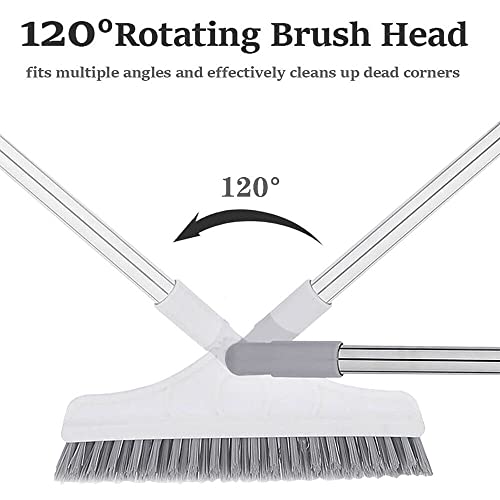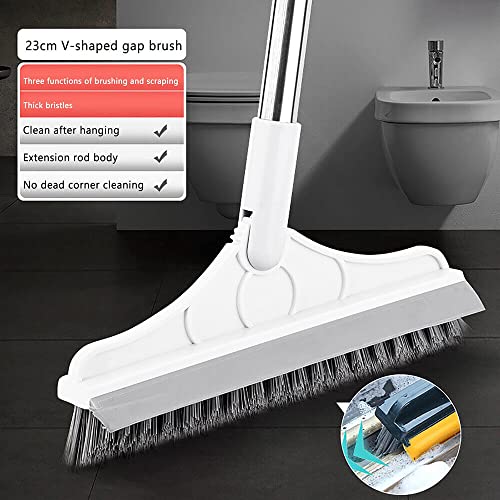 Generic - فرشاة لتنظيف البلاط 2 في 1 بمقبض طويل، فرشاة بلاط قابلة للتعديل شكل V بمساحة مطاطية، فرشاة تنظيف الارضيات سحرية دوارة 120 درجة للحمام والمطبخ والشقوق، ابيض