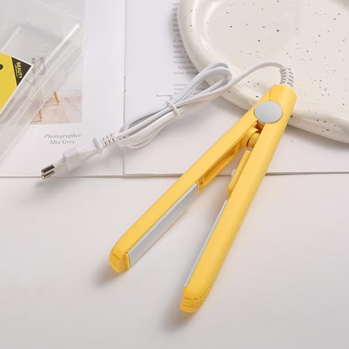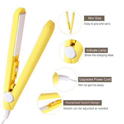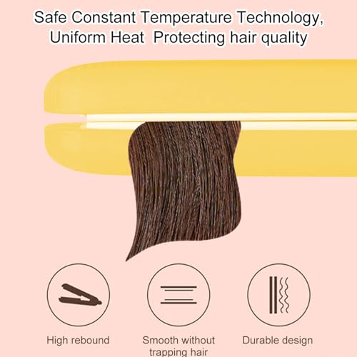 Doukesh - مكواة فرد الشعر وتمليسه 2 في 1 صغيرة احترافية مزودة بصفائح سيراميك محمولة وسريعة التسخين ومناسبة للشعر المجعد أو المفرود، أصفر