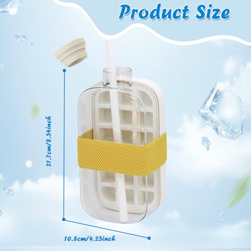 HEHIPLE - زجاجة مكعبات ثلج 2 في 1 مع قشة سعة 800 مل - زجاجة مياه سهلة الضغط مع غطاء مانع للتسرب، ماكينة صنع ثلج عمودية بدون لمس للفريزر والسفر وصالة الالعاب الرياضية والاستخدام المنزلي