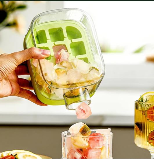 Generic - زجاجة مكعبات ثلج 2 في 1 بفوهة للصب وحاوية شفافة مع غطاء أخضر، تعمل كموزع مشروبات