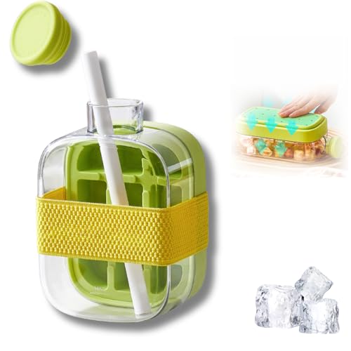 iDreaming - قالب مكعبات الثلج 2 في 1، قالب مكعبات ثلج يعمل بالضغط على البارد، كوب مكعبات ثلج صيفي بارد مع غطاء وسلة، قالب سيليكون سهل الفك بدون لمس، زجاجة مياه للفريزر والقهوة والعصير