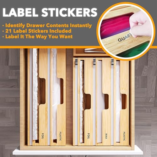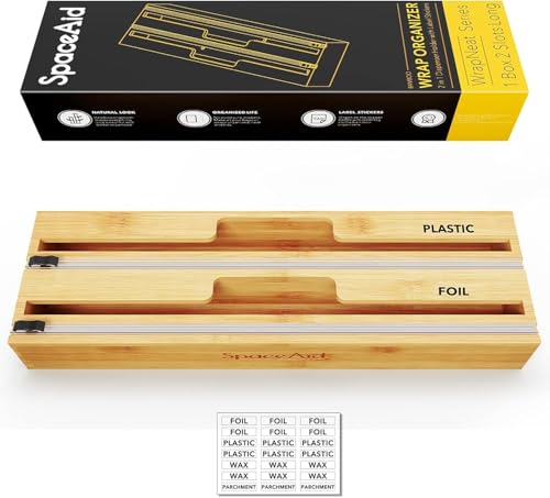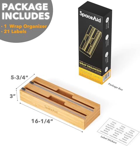 - تخزين لفافات المطبخ - مصمم لتغليف البلاستيك ورقائق الألومنيوم وورق الشمع؛ ليس لللفات التي يبلغ عرضها من 12 انش؛ يبلغ ارتفاع منظم الخيزران لتنظيم تخزين المطبخ 3 انش؛ قم بقياس ارتفاع درجك أولاً