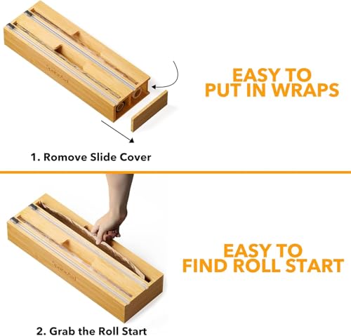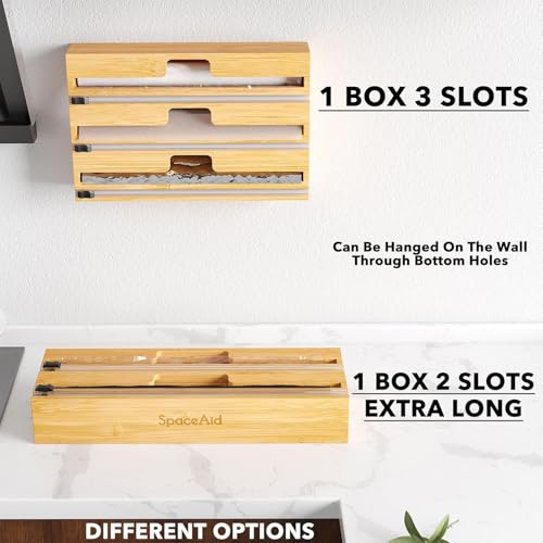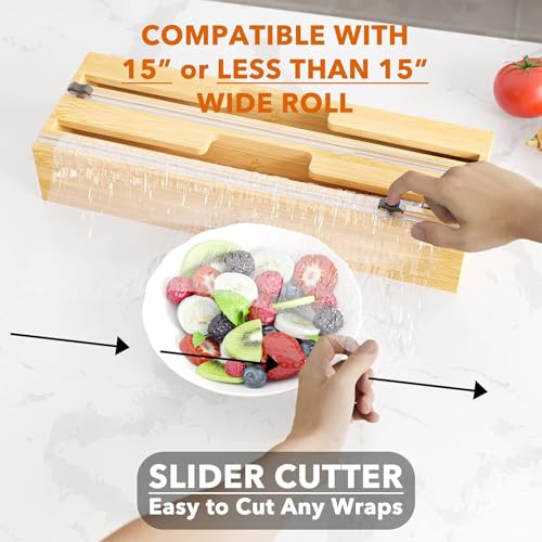 Generic - منظم تغليف طويل 2 في 1 من مع قطاعة وملصقات ورق بلاستيكي رقائق الالومنيوم وورق الشمع لدرج المطبخ حامل لفافات الخيزران متوافق لفة 15 انش