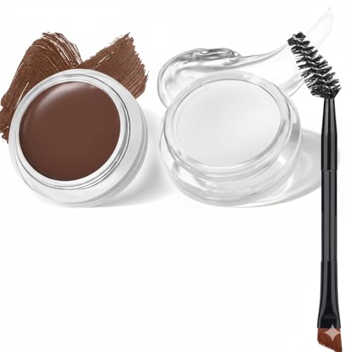 Generic - مجموعة مكياج 2 في 1 مع جل للحواجب، شمع تشكيل وفرشاة مزدوجة، دهان بني داكن مقاوم للماء لملء وتفصيل الحواجب، جل تصفيف الحواجب الشفاف لنسيم الحواجب المنفوش (N 2- بني)