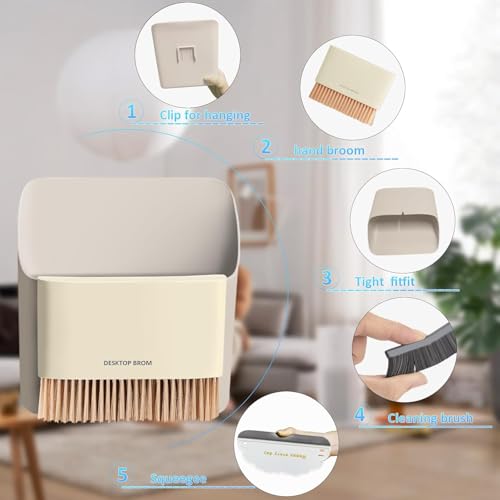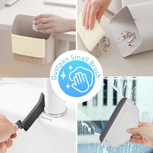 AREXOL - جاروف وسلة مهملات صغيرة 2 في 1 مع فرشاة تنظيف للمكتب والمنزل والسيارة، صغيرة وسريعة التنظيف وسهلة التخزين، مجموعة عملية صغيرة الحجم