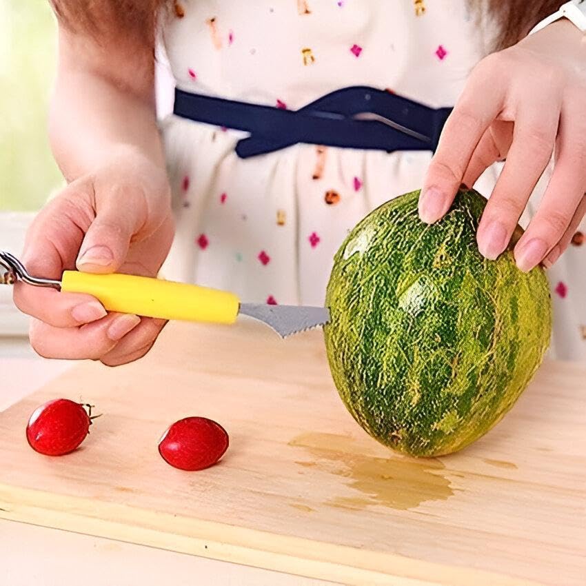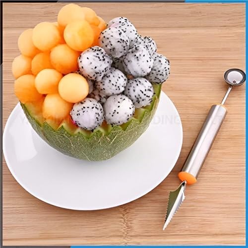 Generic - ملعقة وسكين فواكه متعددة الأغراض 2 في 1: أداة أساسية لتقطيع البطيخ ونحت الفاكهة، مثالية لصنع سلطات الفاكهة الرائعة والحلويات اللذيذة وكرات الآيس كريم