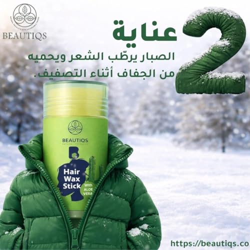 beautiqs - عصا شعر 2 في 1 من بيوتيكس بتصميم صبار وصبار مع فرشاة شعر للاطفال | تحكم في الحواف وتنعيم الشعر المجعد | بدون طلاء ابيض | محمولة | للاستخدام اليومي عرض الهير والشمع مع فرشاة ال