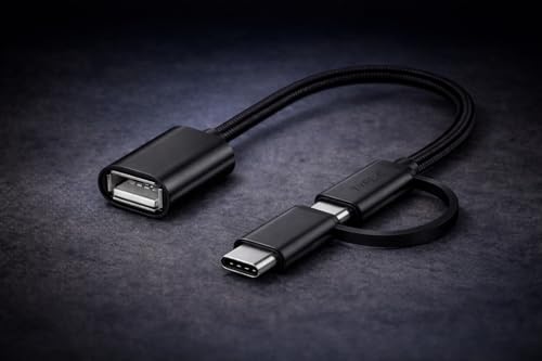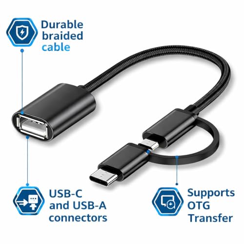 عام - كابل او تي جي 2 في 1 USB الى نوع سي ومايكرو USB - محول موصل مزدوج لاجهزة الاندرويد، يدعم التوصيل والتشغيل او تي جي