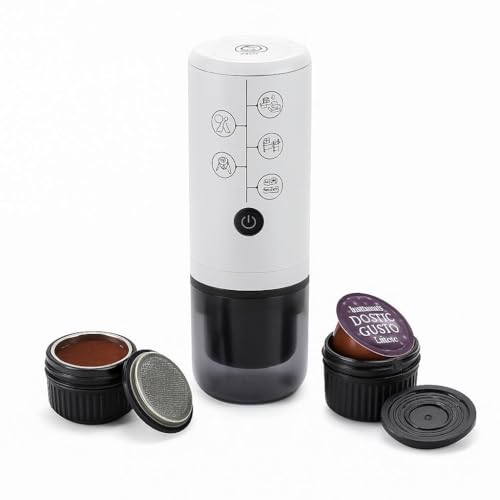 Generic - ماكينة قهوة إسبريسو 2 في 1 محمولة – تدعم الكبسولات والبن المطحون – ماكينة لاسلكية للسفر والتخييم والعمل – ضغط عالي 17 بار (ابيض)