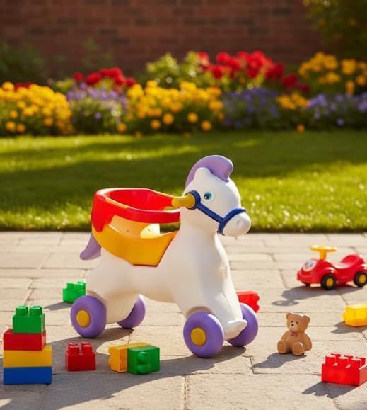 Generic - لعبة ركوب حصان هزاز 2 في 1، متعددة الالوان، بلاستيك، دعم التوازن والمشي، مقبض مريح، 65 × 30 × 35 سم، للاولاد والبنات