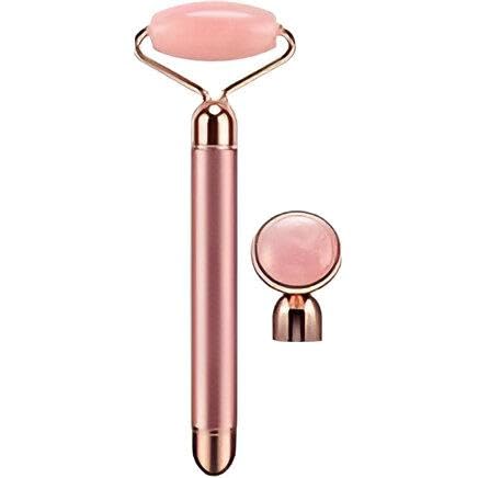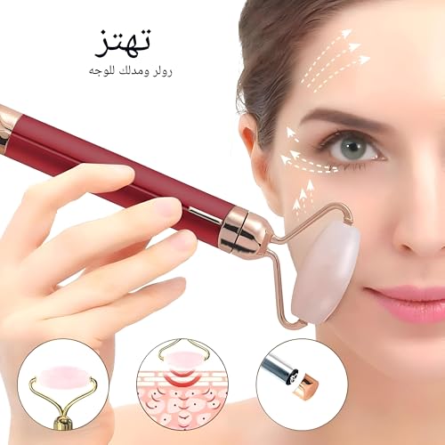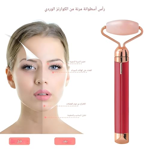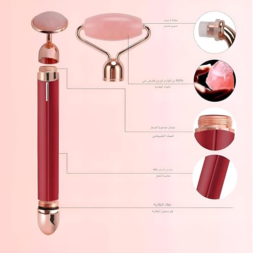 Generic - بكرة تدليك الوجه الاهتزازية 2 في 1 من حجر الكوارتز الوردي مع حجر عين إضافي، اهتزاز عالي التردد لرفع البشرة، مضاد للشيخوخة، مضاد للتجاعيد، قضيب تجميل كهربائي للاسترخاء، بشرة أكثر نعومة