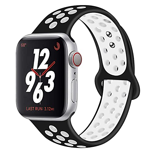 Generic - هيكل سوار رياضي من السيليكون 2 في 1 مزود بزجاج مقوى لسلسة ساعة ابل 4/5/6 بمقاس 44 ملم (لون ابيض واسود)، للكبار من الجنسين