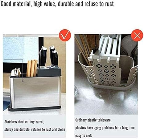 Generic - صندوق معالق وسكاكين 2 في 1 - من الستانلس ستيل 304 - مقاوم للصدأ ومع قاعدة بلاستيكية - يتسع لعدد كبير من المعالق والشوك - مع مكان خاص للسكاكين|من عام