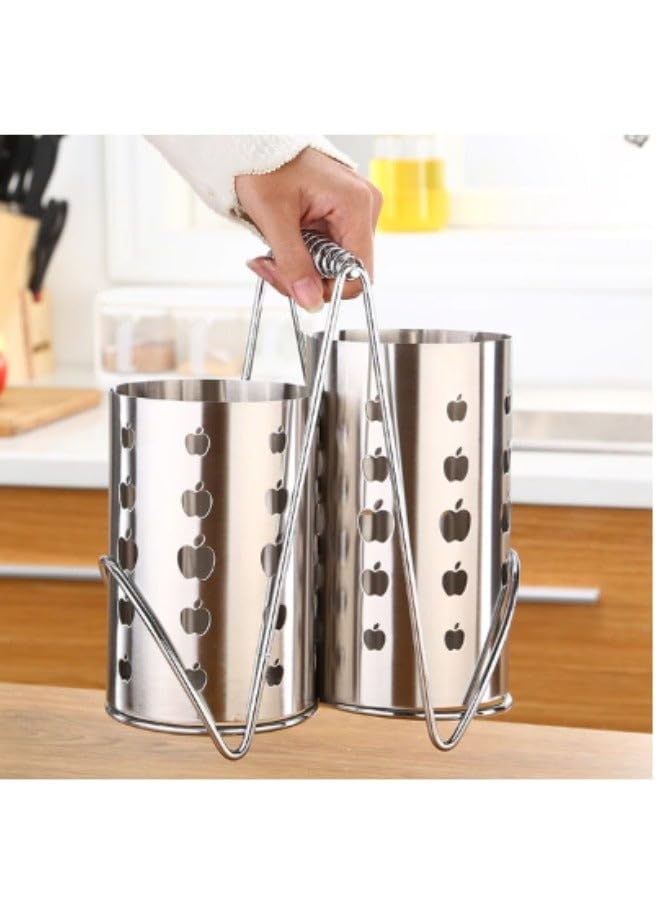 generic - حامل ادوات تناول الطعام 2 في 1 من الستانلس ستيل مع مصفاة