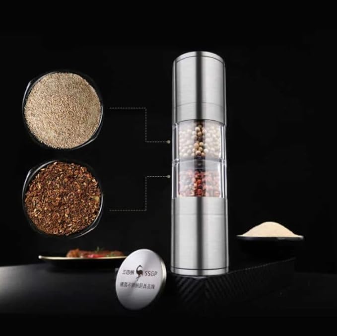 - تصميم مزدوج الحجرة: يتميز بحجرات منفصلة لبهارتين مختلفتين، مثالي للملح والفلفل أو مجموعات التوابل المفضلة لديك