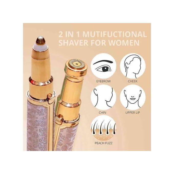 Dollar for Import - جهاز إزالة شعر الوجه والحواجب 2 في 1، قابل للشحن USB، مع إضاءة LED، وردي، يشمل رأسين قابلين للتبديل وكابل شحن من دولار لإسيراد الادوات المنزلية