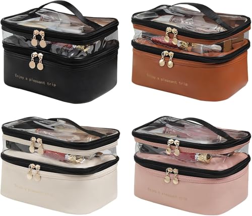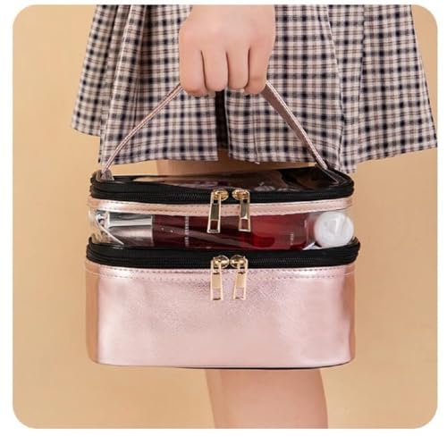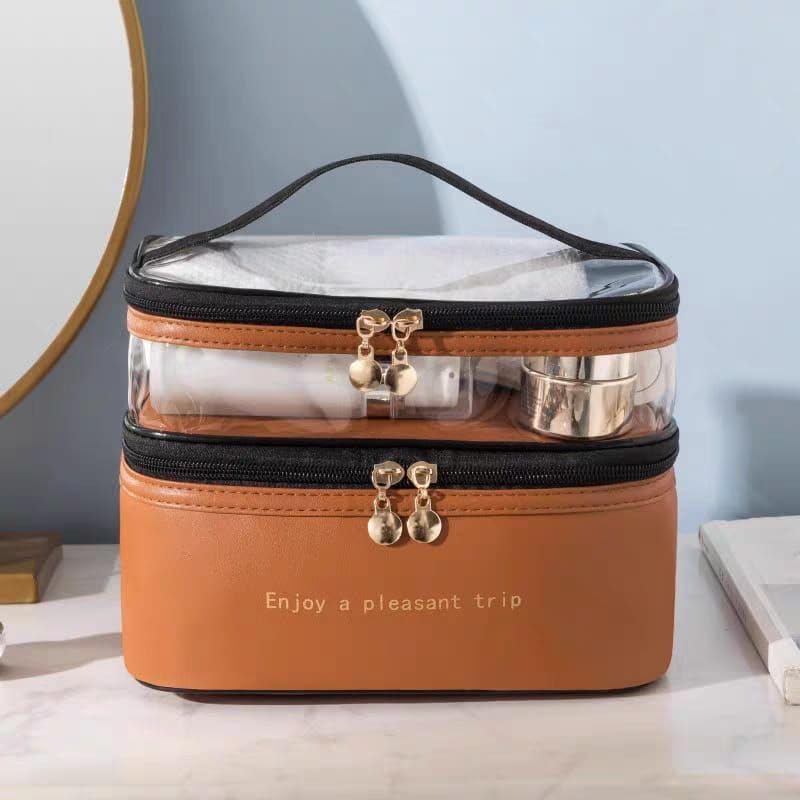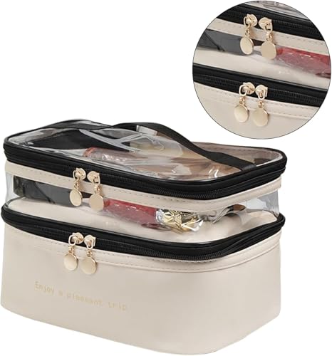 Generic - شنطة مكياج جلد ضد الماء 2 في 1 بتصميم عصري مع سحاب مزدوج لسهولة التنظيم وحمل مستحضرات التجميل والكريمات والاكسسوارات للسفر والرحلات