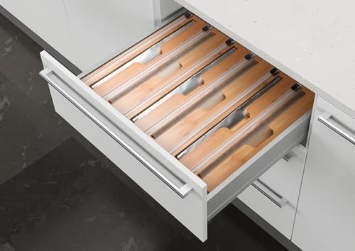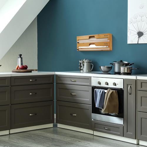 - تخزين لفافات المطبخ - مصمم لتغليف البلاستيك ورقائق الألومنيوم وورق الشمع؛ ليس لللفات التي يبلغ عرضها من 12 انش؛ يبلغ ارتفاع منظم الخيزران لتنظيم تخزين المطبخ 3 انش؛ قم بقياس ارتفاع درجك أولاً