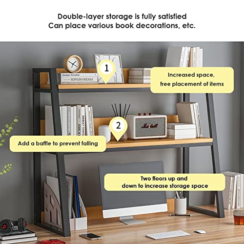 - [التخزين والعرض]: سعة تخزين من طبقتين، يمكن لكل طبقة من رف الكتب المكتبي تحمل حمولة 25 كجم وارتداء جهاز سطح المكتب المضاد للانقلاب، مثالي لتخزين الكتب والملفات واللوازم المكتبية والتباهي بالمكتب.