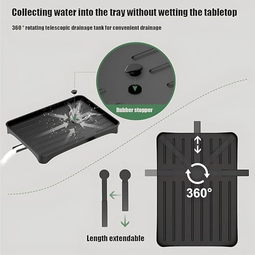 - يتميز بصينية تنقيط قابلة للتعديل وقناة تصريف قابلة للدوران 360 درجة مع قابس بلاستيكي، يتيح هذا الرف إعادة توجيه المياه بدقة مباشرة إلى الحوض، مما يزيل البرك ويحافظ على أسطح الطاولات جافة ونظيفة وخالية من أضرار الماء.