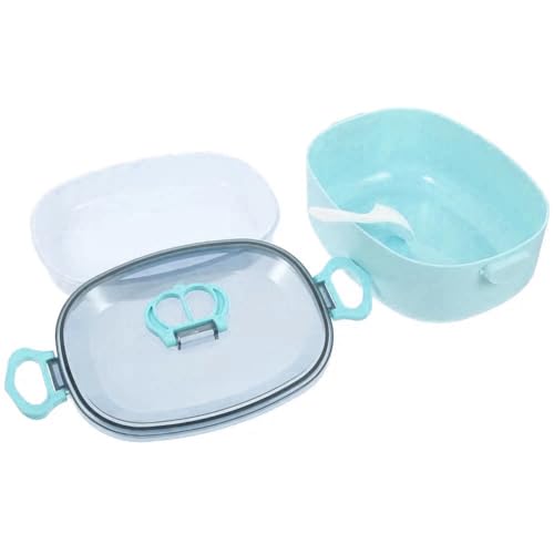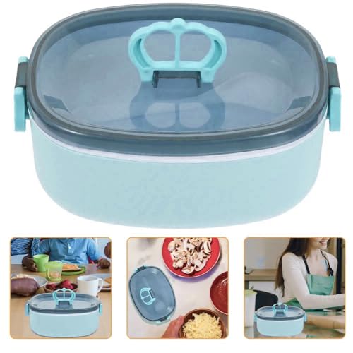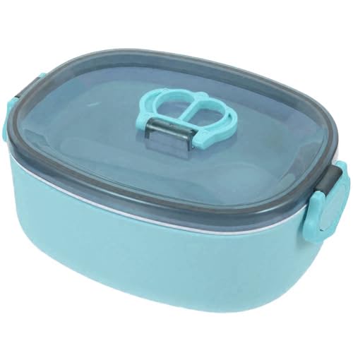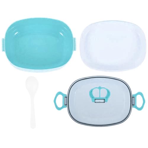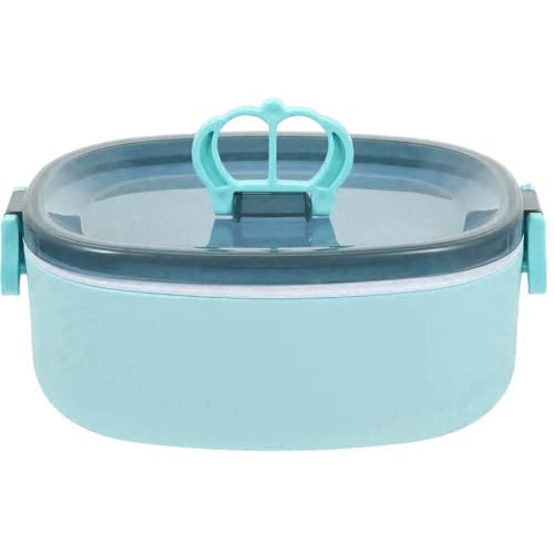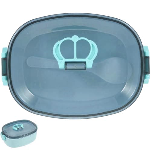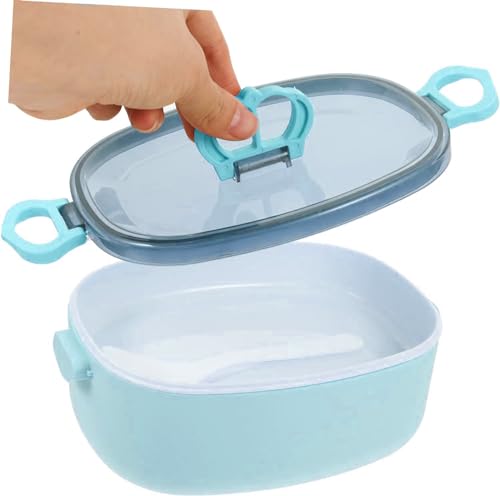 Generic - صندوق غداء من طبقتين مع غطاء محكم وملعقة طعام صحي محمول بسعة 600 مل للمنزل والعمل والمدرسة للبالغين والأطفال ازرق بلاستيك PP5