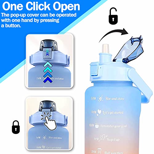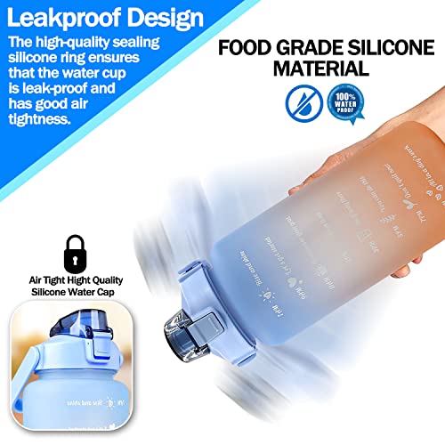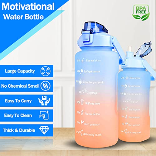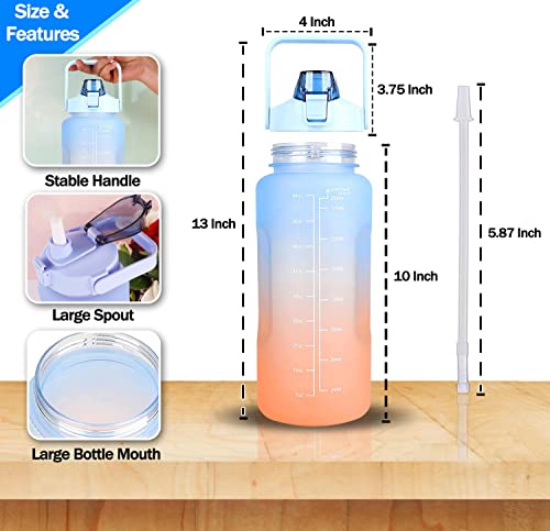 RKINC - زجاجة مياه تحفيزية سعة 2 لتر، زجاجة مياه مع شفاطة سعة 2 لتر، مقبض حمل، فوهة واسعة، خالية من مادة البيسفينول أ، مانعة للتسرب، مثالية لصالة الألعاب الرياضية والعمل والمدرسة والمكتب (لون أزرق - برتقالي)