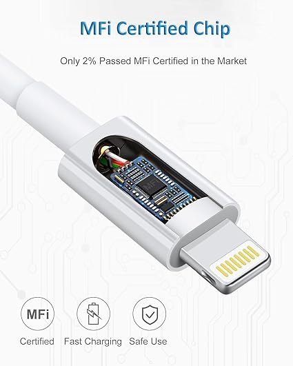 - شحن عالي السرعة - شحن سريع 2.4 امبير، توفر الكابلات المعتمدة من ام اف اي حل شحن آمن ومستقر لأجهزتك. مصمم بشريحة أصلية، يدعم كيبل شاحن ايفون هذا الشحن السريع، لجميع الأجهزة المتوافقة. مع منع ارتفاع درجة الحرارة والشحن الزائد، تأكد من سلامتك أنت وأجهزتك.