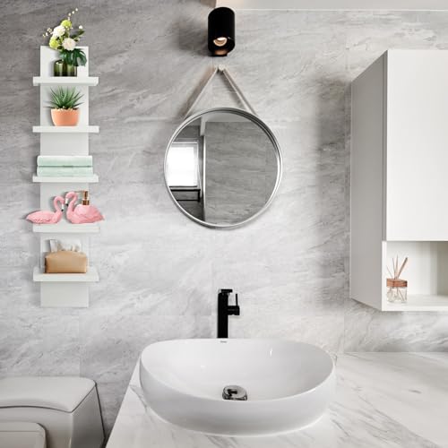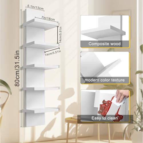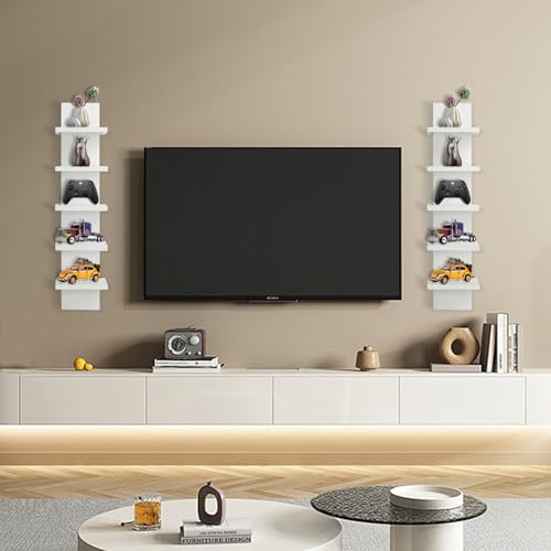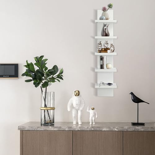 YEXEXINM - وحدة رفوف حائط من 5 طبقات - لمسة نهائية رقيقة ناعمة وضيقة - عمود عمودي لديكور الحائط للتخزين العائم، منظم ديكور منزلي، رف متعدد الاستخدامات لغرف النوم وغرف المعيشة (ابيض)