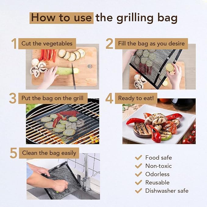 - 💦【سهلة التنظيف】مجموعة أكياس الشواء الخاصة بنا قابلة للغسل بالكامل ويمكن تنظيفها بسهولة كبيرة.