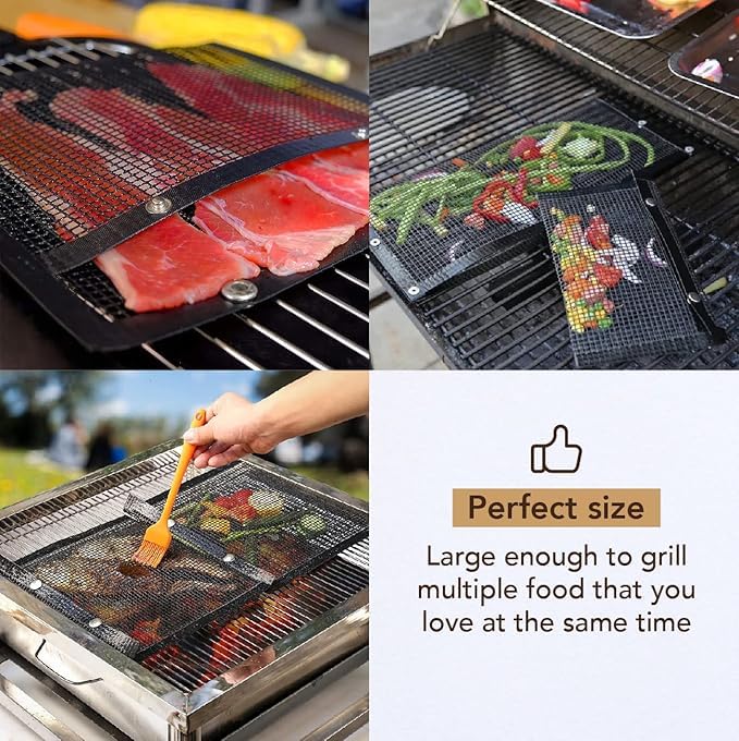 - 🌟【مقاس مثالي】 – مفرش شواء بمقاس كبير 27 سم × 22 سم، وهو كبير بما يكفي لشواء العديد من الأطعمة التي تحبها في نفس الوقت.