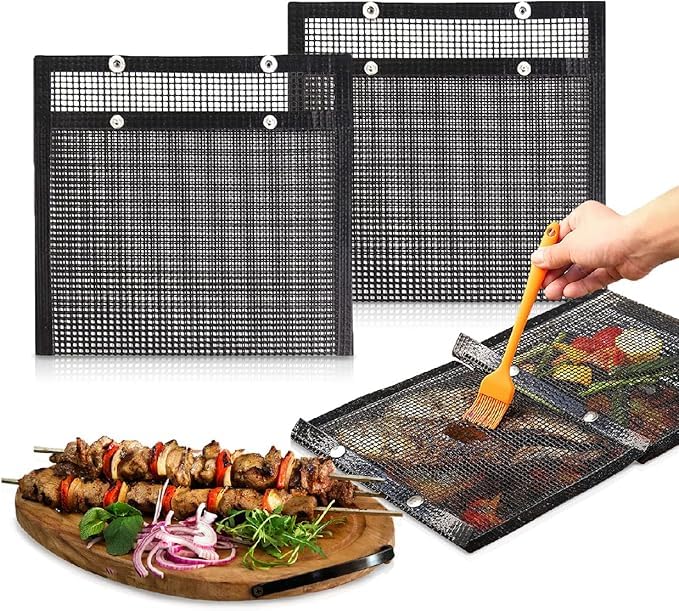 Generic - أكياس شواء شبكية قابلة لإعادة الاستخدام مقاس 28×23 سم، أكياس شبكية غير لاصقة/ مفرش شواء للأسماك والخضروات، ملحقات شواء للشوايات والمدخنات، مفرش شواء مقاوم للحرارة (حجم L)، قطعتين