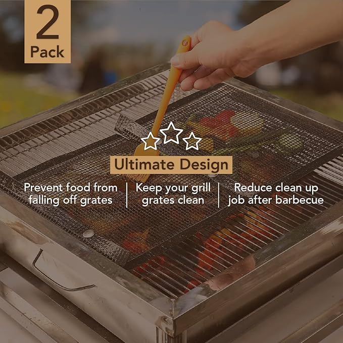 - 🔥【تصميم مثالي】 - يسمح الهيكل الشبكي بمرور الحرارة للحصول على علامات الشواء المقرمشة الرائعة. يمنع الطعام من السقوط من الشبك، مما يحافظ على شبكات الشواء نظيفة ويقلل من مهمة التنظيف بعد الشواء