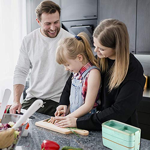 Iteryn - صندوق غداء بينتو، لانش بوكس بينتو قابل للتكديس 3 × 1 من ايترن، صندوق غداء صديق للبيئة مانع للتسرب من قش القمح، علب تحضير الوجبات، 2 قطعة