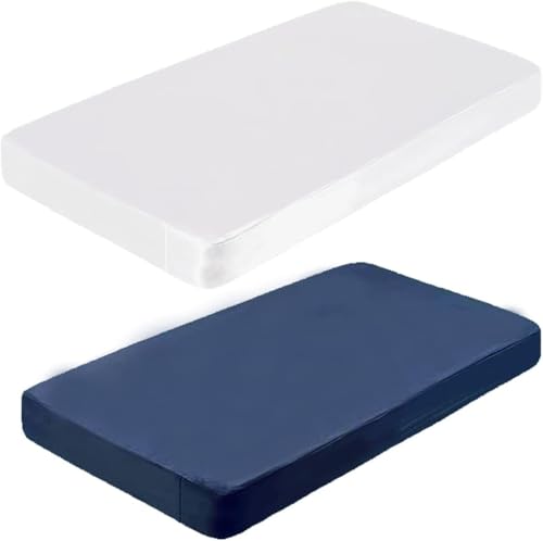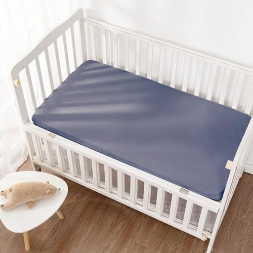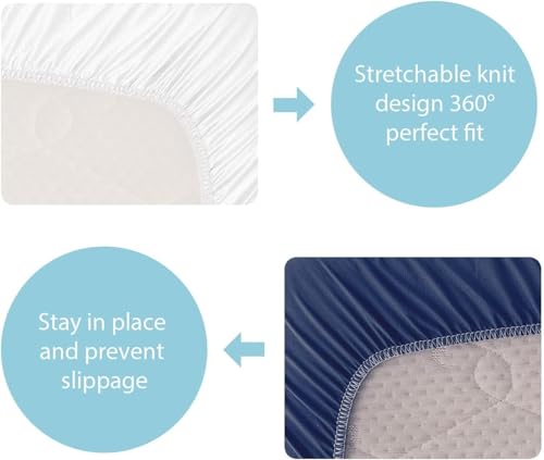 Generic - ملاءات سرير الأطفال من المايكروفايبر لتناسب أسرة الأطفال القياسية ومراتب الأطفال الصغار، ناعمة ومزودة بأستك لتثبيت محكم، أزرق كحلي وأبيض، 1.3 م × 71.12 سم × 20.32 سم، 2/ العبوة