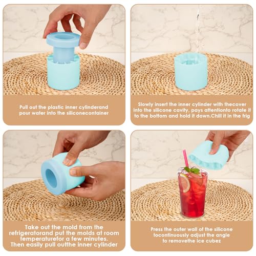 LUEXBOX - قوالب مكعبات ثلج اسطوانية من السيليكون، قوالب مكعبات ثلج سهلة الفك للكوكتيلات والويسكي والقهوة والمشروبات، كوب صانع دلو الثلج المحمول بتصميم ضغط، سعة 40 قطعة (ازرق)