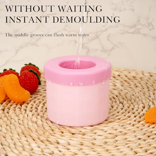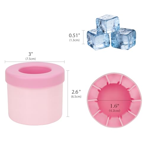 LUEXBOX - قوالب مكعبات ثلج اسطوانية من السيليكون، قوالب مكعبات ثلج سهلة الفك للكوكتيلات والويسكي والقهوة والمشروبات، كوب صانع دلو الثلج المحمول بتصميم ضغط، سعة 40 قطعة من مكعبات الثلج (بينك)