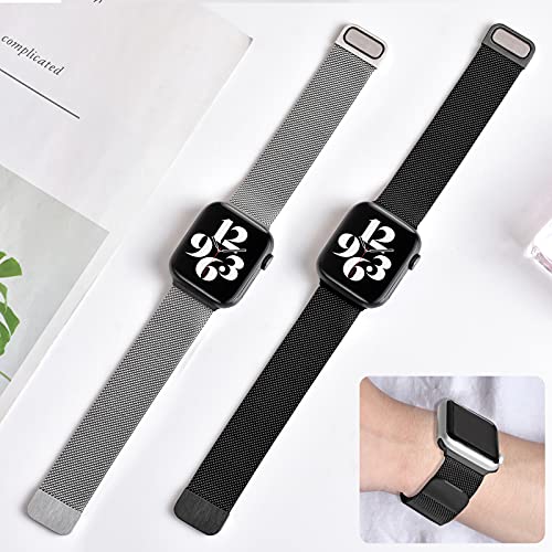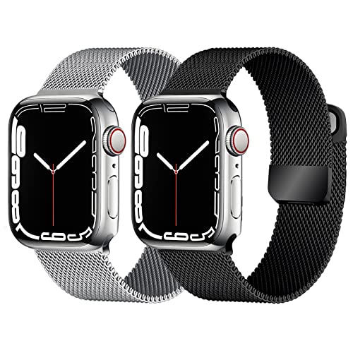 Generic - سوار شبكي معدني بديل من الستانلس ستيل قابل للتعديل، بقفل حلقي ميلانو مغناطيسي، لساعات ابل 38 و40 و41 و42 و44 و45 ملم، واي ووتش سلسلة SE و8 و7، قطعتين من اي سي باند, ستانلس ستيل, بدون أحجار كريمة، أحمر