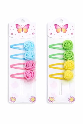 Generic - عبوة 2 طقم دبابيس شعر للبنات والسيدات بتصميم وردة ، العبوة 8 قطع ، ألوان متعددة، لتزيين الشعر والتصفيف