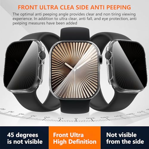 RWRW - حافظة شاشة حماية للخصوصية لساعة ابل سلسلة 10 مقاس 46 ملم، مصنوعة من البولي كربونات الصلب، مقاومة للخدش، [مضادة للاختلاس] غطاء حماية رفيع للغاية من الزجاج المقوى لساعة سلسلة 10 (شفاف/شفاف، 46 ملم)