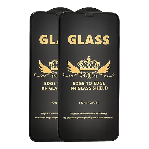 G-Power - شاشة حماية من الزجاج المقوى بدرجة صلابة 9H متوافقة مع موبايل آيفون 11 6.1 بوصة من جي باور - حواف بإطار أسود، مضادة للخدش، تصميم يغطي الشاشة من الحافة إلى الحافة، 2 قطعة